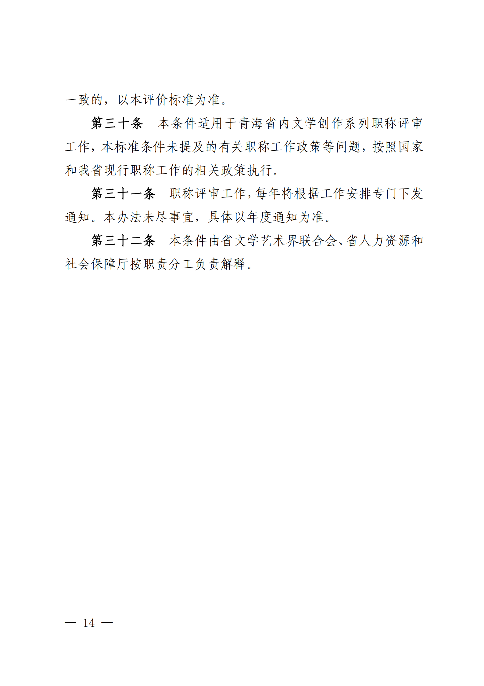 《青海省艺术系列文学创作专业职称评审条件(试行)》