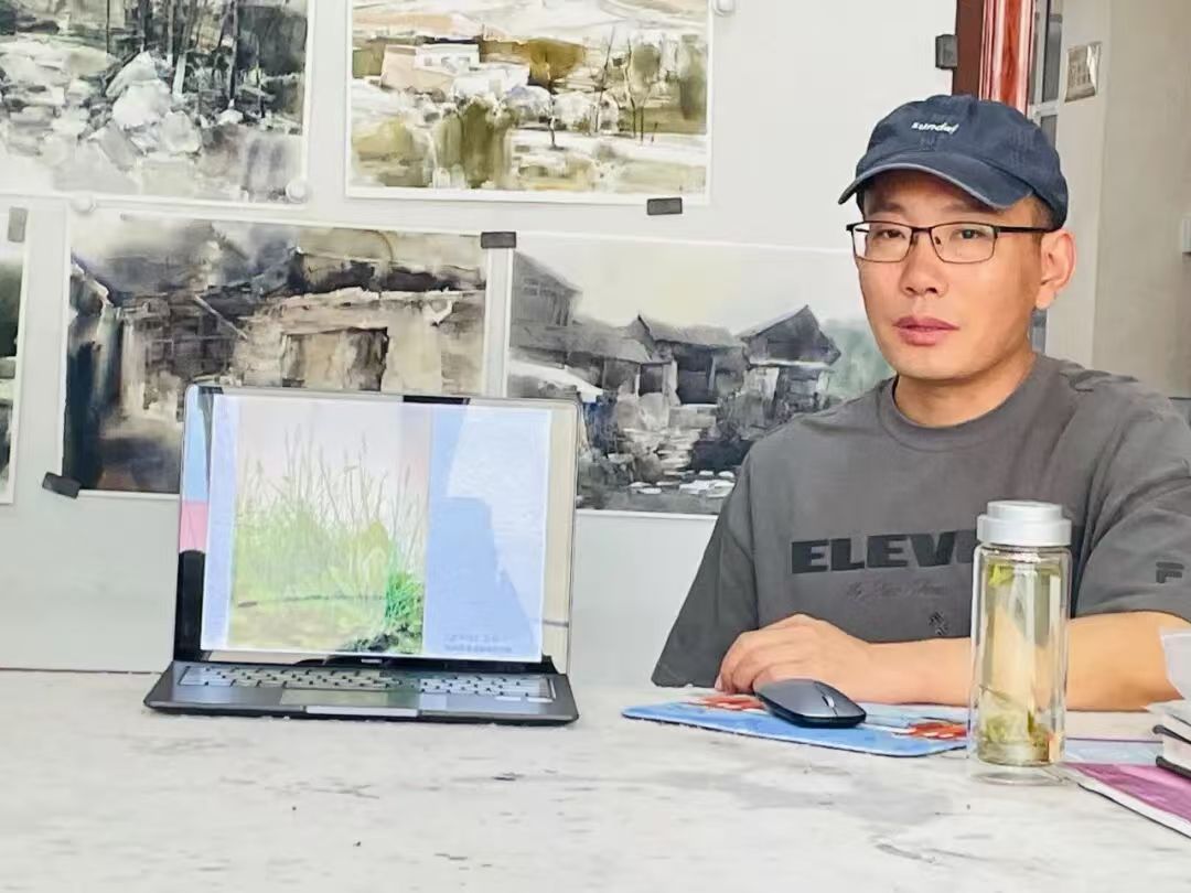随后,刘老师进行了现场技法演示。在水彩纸上,他挥洒自如:时而以湿接法让色彩自然渗化、朦胧交融,时而借留白技巧精巧提取高光,为画面注入灵动气韵。活动现场学员们专注听讲、细心观察、全心投入,纷纷提笔尝试实践,在融洽温馨的氛围中收获颇丰。