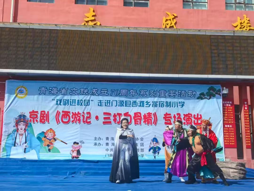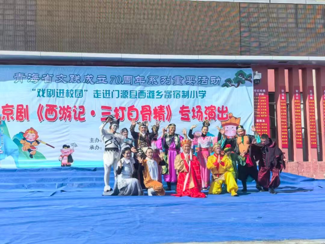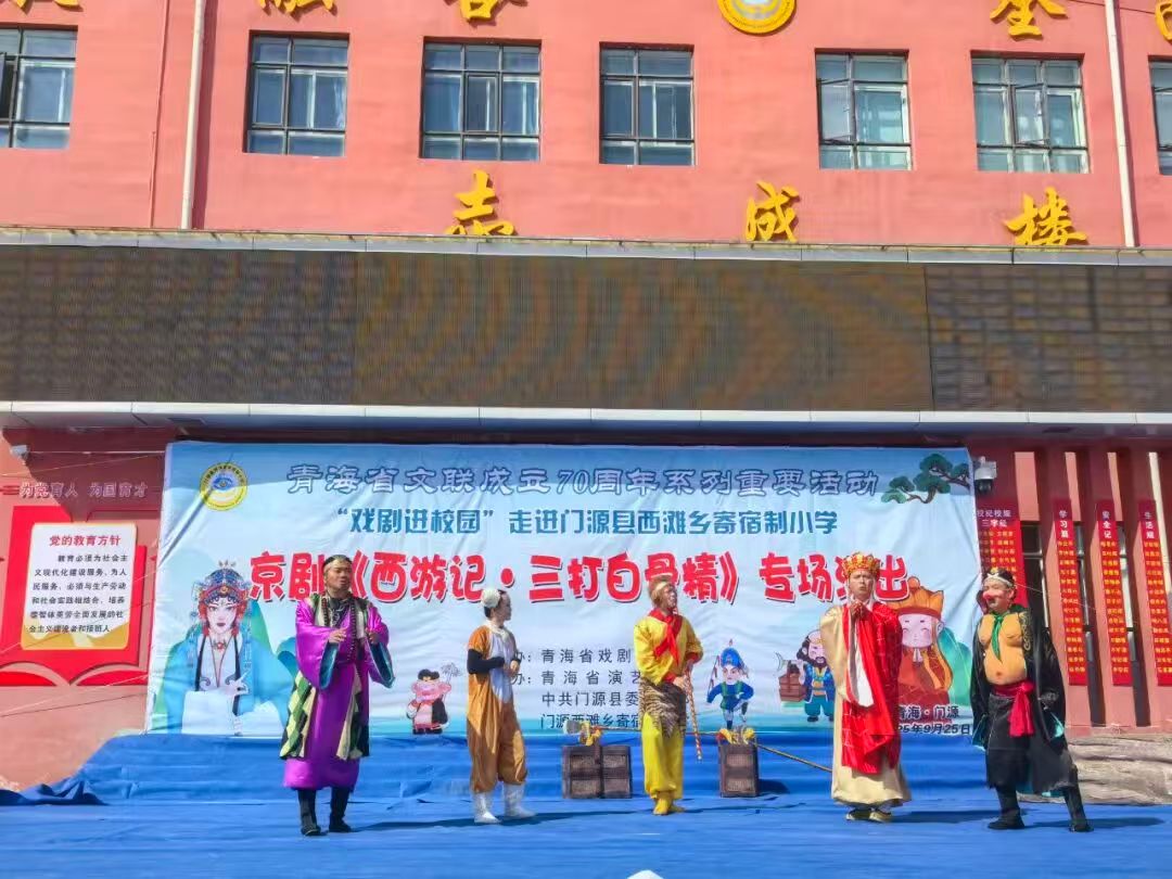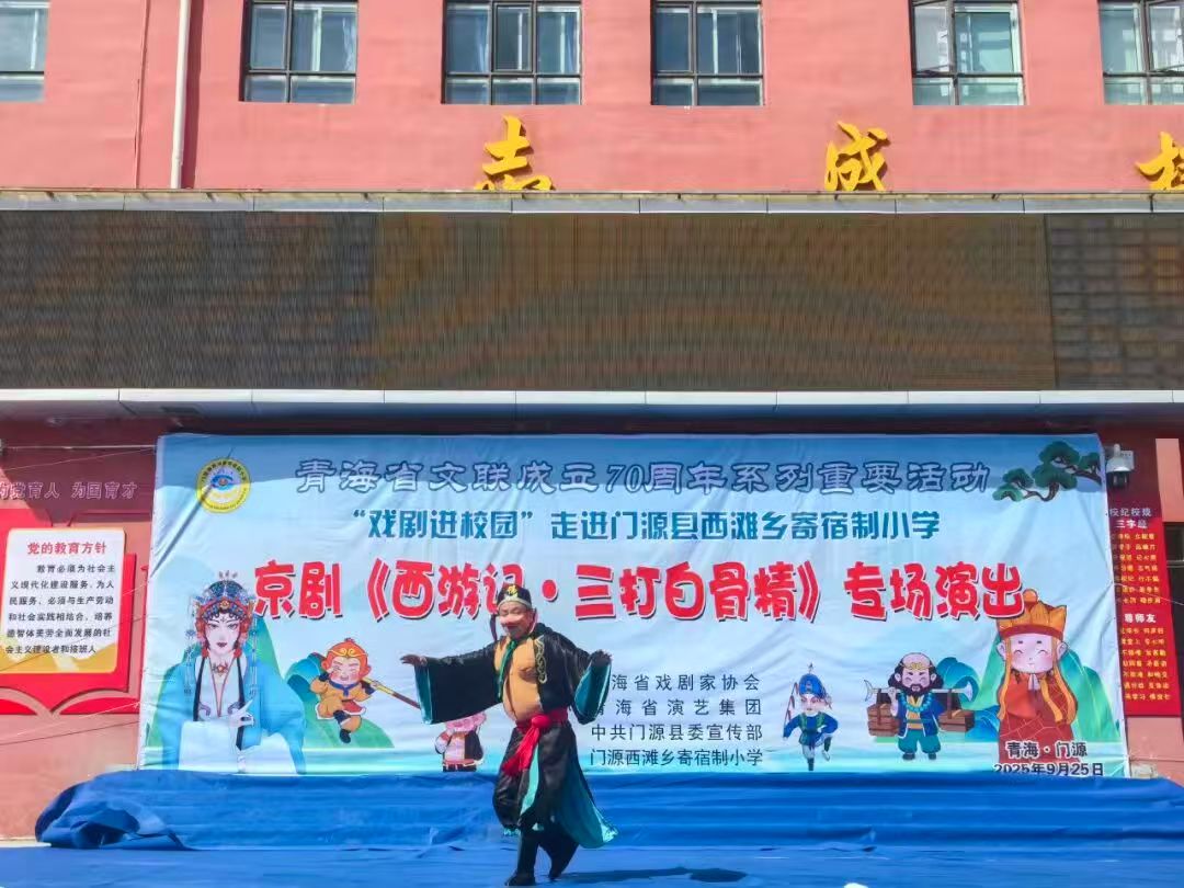 在青海省文联成立70周年之际,为切实推动优质文化资源下沉基层校园,9月25日,由省剧协主办,中共门源县委宣传部、青海省演艺集团、门源西滩乡寄宿制小学承办的“省文联成立70周年系列重要活动——儿童京剧《西游记·三打白骨精》专场演出”在门源县西滩乡寄宿制小学精彩上演,为当地学生呈现了一场兼具艺术水准与文化底蕴的视听盛宴。