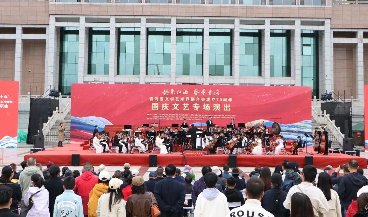 10月7 日,由青海省文联、青海省音乐家协会主办的“韵聚江源 艺荟青海”青海省文学艺术界联合会成立70周年中外名曲交响音乐会在新宁广场举办。以“中外名曲交融、家国情怀交织”为特色,既是对青海文联70年扎根高原、服务人民的文艺成果致敬,也为国庆增添了浓厚的艺术氛围,以跨越地域与时代的经典旋律,为观众带来一场融汇家国情怀、民族风情与国际视野的音乐盛宴。