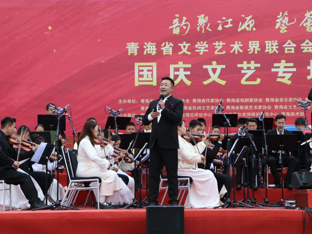 10月7 日,由青海省文联、青海省音乐家协会主办的“韵聚江源 艺荟青海”青海省文学艺术界联合会成立70周年中外名曲交响音乐会在新宁广场举办。以“中外名曲交融、家国情怀交织”为特色,既是对青海文联70年扎根高原、服务人民的文艺成果致敬,也为国庆增添了浓厚的艺术氛围,以跨越地域与时代的经典旋律,为观众带来一场融汇家国情怀、民族风情与国际视野的音乐盛宴。