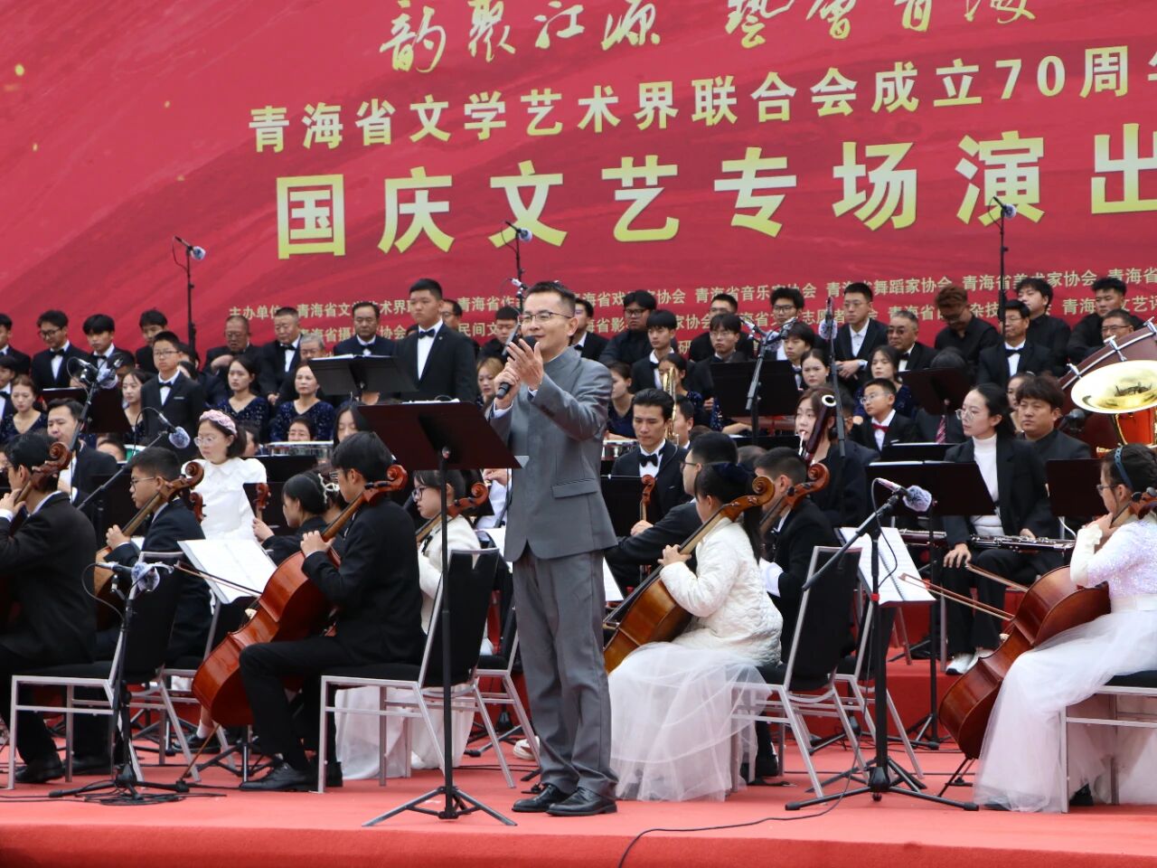 10月8日,由青海省文联、青海省音乐家协会主办的“韵聚江源 艺荟青海”青海省文学艺术界联合会成立70 周年《黄河》主题交响音乐会在新宁广场精彩上演。在国庆佳节的喜庆氛围中,这场以“黄河”为魂、以交响乐为载体的艺术盛会,让观众们重温黄河精神与民族记忆,感受青海文艺事业的蓬勃活力。