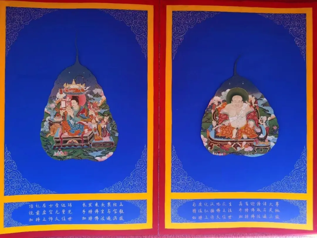 谈及创作,更登才让表示:“这幅作品算得上是‘两年磨一剑’,从甄选适龄菩提鲜叶、遵循古法完成避光发酵及晾晒定型等多道炮制工序,到研磨天然矿物颜料、精准起稿勾线,再到分层铺金、精修衣袂、恪守《造像量度经》造像仪轨开眼,每一道工序都精益求精。传承是技艺的本真根基,创新是文脉的时代生命力,这件凝聚两载心血的作品,便是我对唐卡艺术的敬畏之心、坚守之力与赤诚之爱的初心践行。”