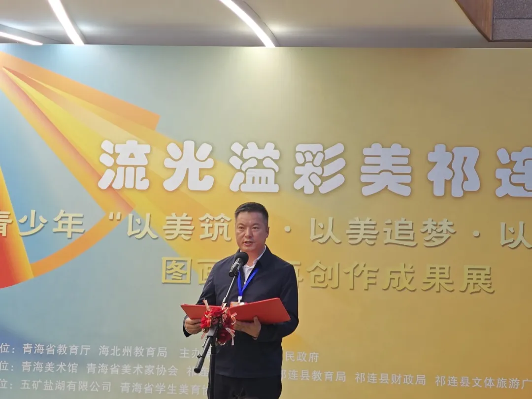 梅尖参在致辞中指出,祁连县近年来深入贯彻落实习近平总书记重要指示精神,始终坚持“五育并举”,将美育作为立德树人、培根铸魂的重要载体。本次展览以“流光溢彩美祁连”为主题,通过“以美筑梦、以美追梦、以美圆梦”的完整实践路径,为青少年搭建了从激发想象、勇敢追梦到展示成果的成长平台,引导他们用画笔描绘家乡壮美山河,讲述动人民族故事,记录时代奋进足迹。他表示,祁连县将以此次活动为新起点,持续深化美育教学改革,为培养全面发展的社会主义建设者和接班人贡献祁连力量。